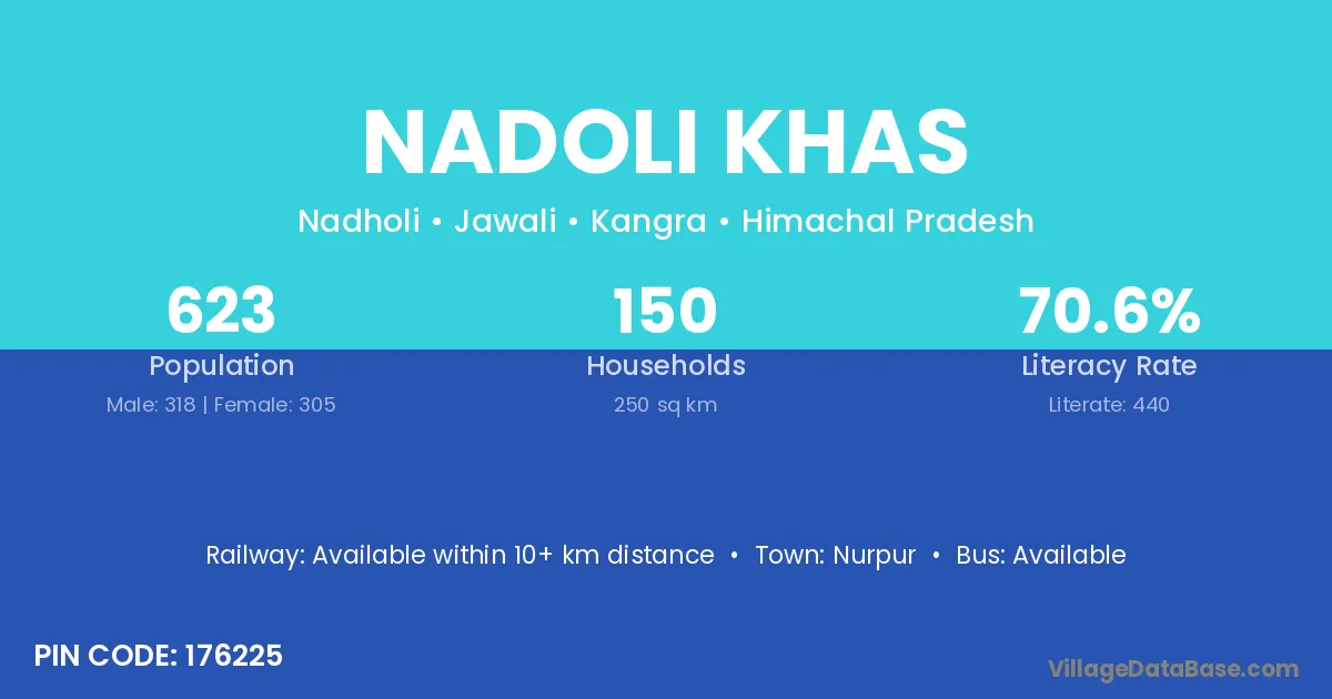 Nurpur is the nearest town to Nadoli Khas village for major economic activities