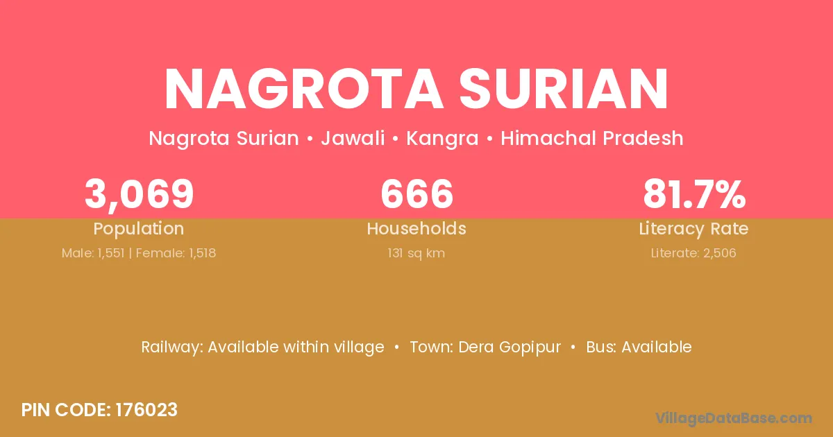 Nagrota Surian village has a total population of 3,069 people, of which 1,551 are males and 1,518 are females.