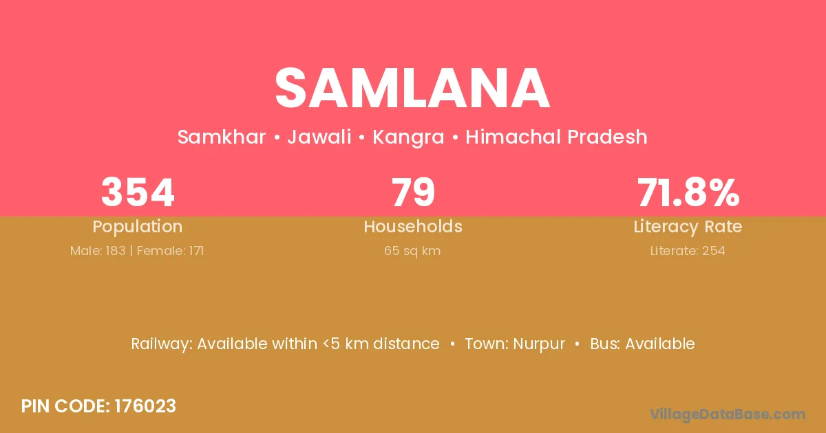 According to Census 2011 information, the village code of Samlana village is 176023.