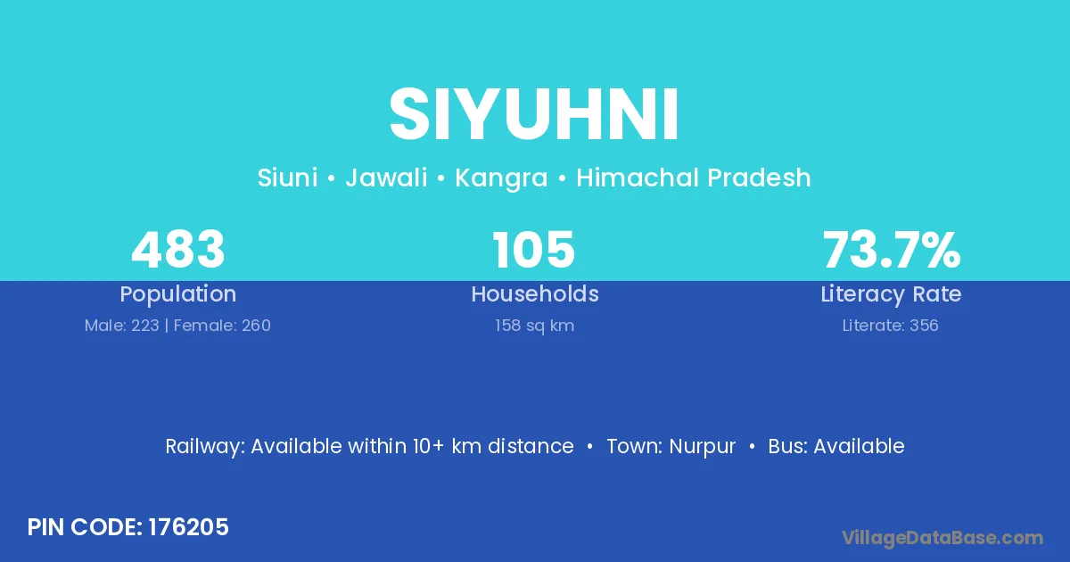 Siyuhni village has a total population of 483 people, of which 223 are males and 260 are females.