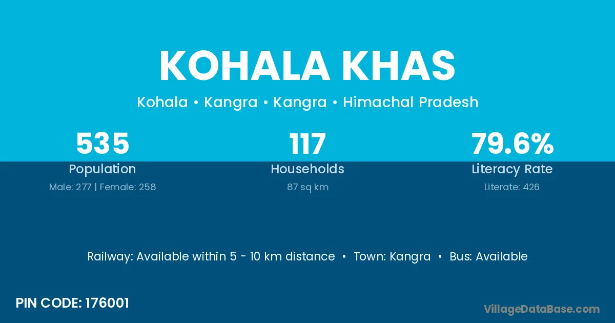 Kangra is the nearest town to Kohala Khas village for major economic activities