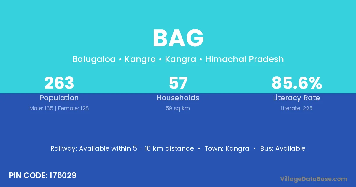 According to Census 2011 information, the village code of Bag village is 176032.