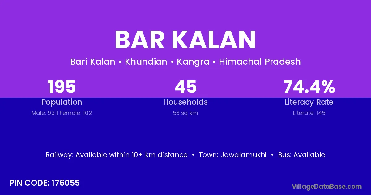 Jawalamukhi is the nearest town to Bar Kalan village for major economic activities