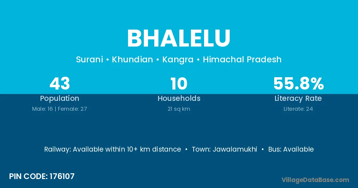 Jawalamukhi is the nearest town to Bhalelu village for major economic activities