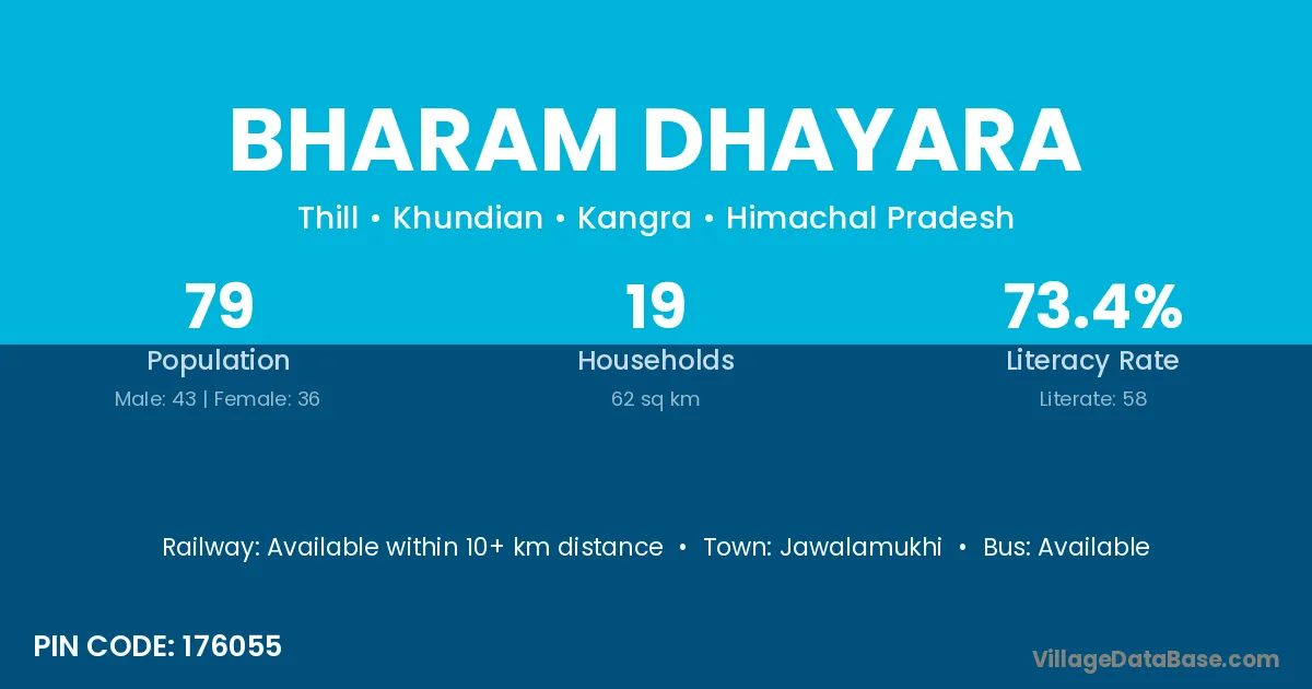 Jawalamukhi is the nearest town to Bharam Dhayara village for major economic activities