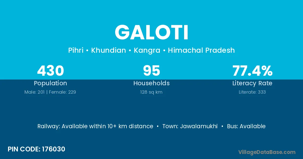 Jawalamukhi is the nearest town to Galoti village for major economic activities