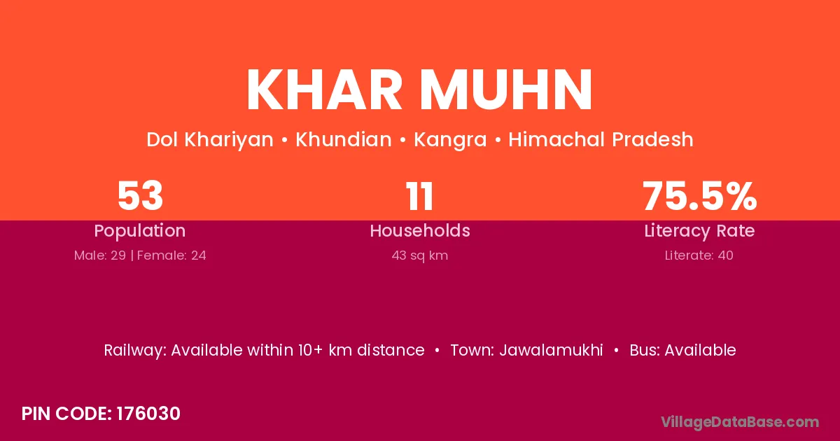 Jawalamukhi is the nearest town to Khar Muhn village for major economic activities