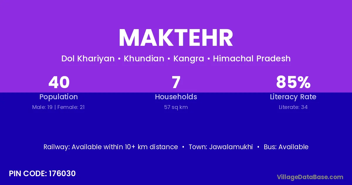 Jawalamukhi is the nearest town to Maktehr village for major economic activities