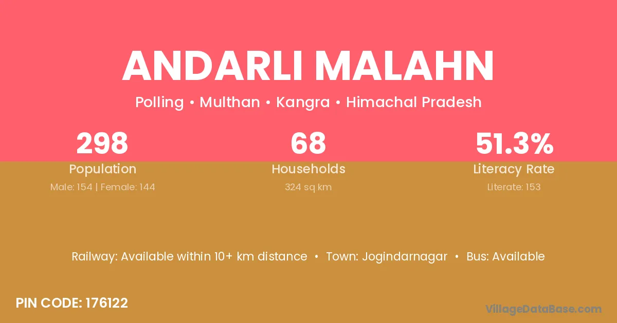 Jogindarnagar is the nearest town to Andarli Malahn village for major economic activities