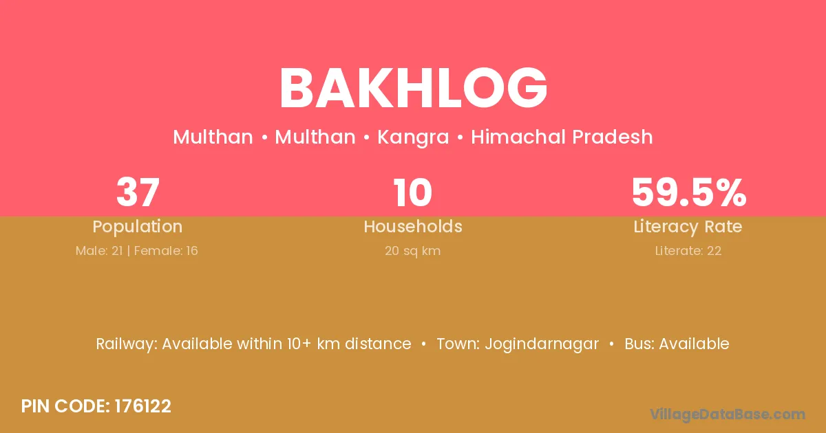 Bakhlog village is located in the Multhan Tehsil of the Kangra district in Himachal Pradesh .