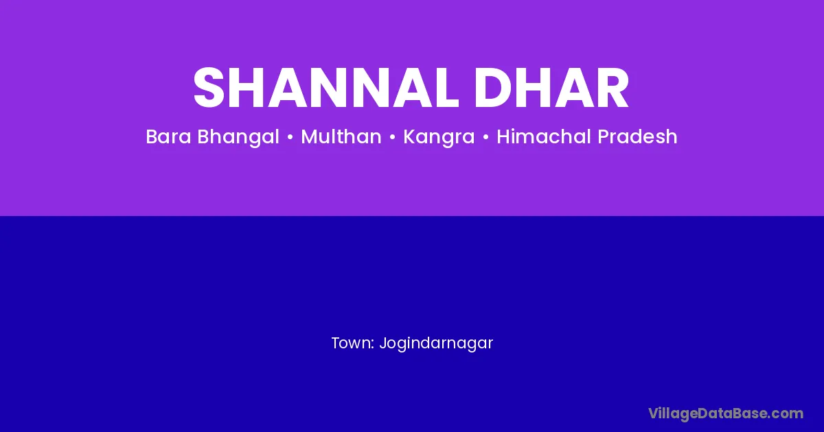 Jogindarnagar is the nearest town to Shannal Dhar village for major economic activities