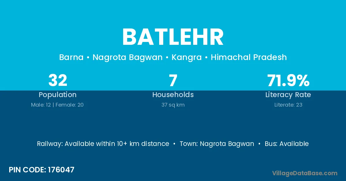 Nagrota Bagwan is the nearest town to Batlehr village for major economic activities