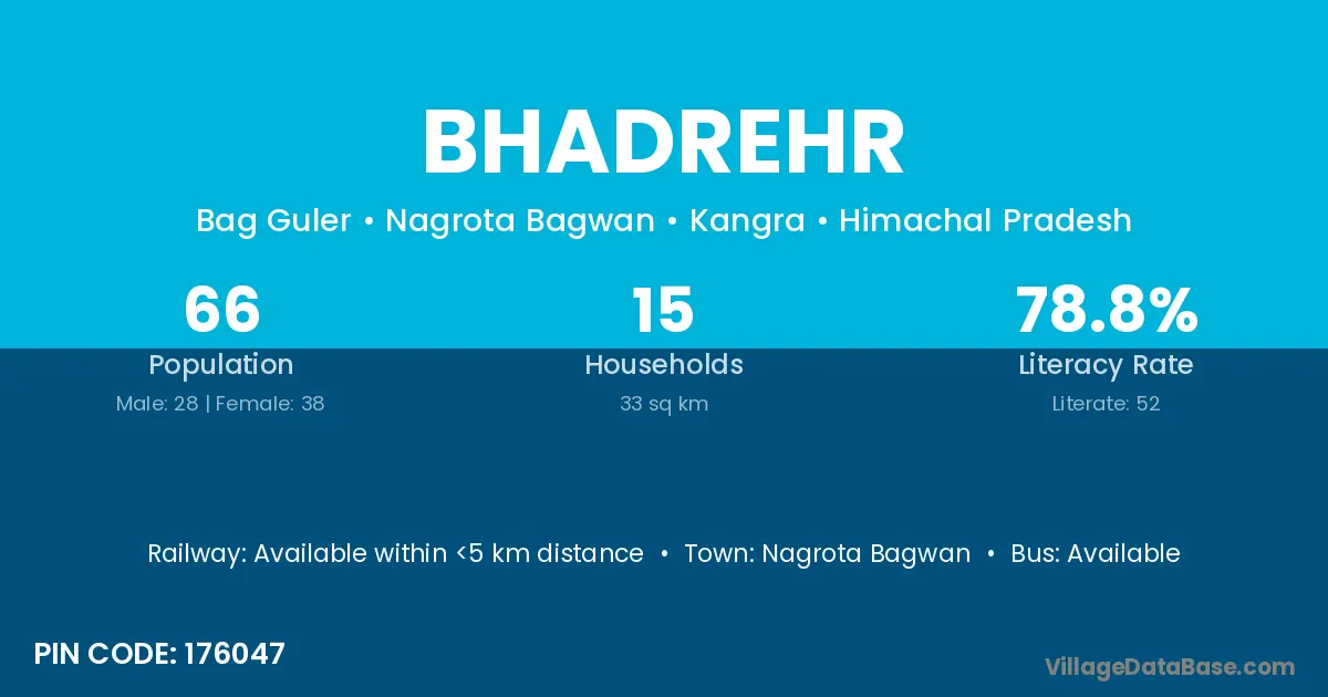 Nagrota Bagwan is the nearest town to Bhadrehr village for major economic activities