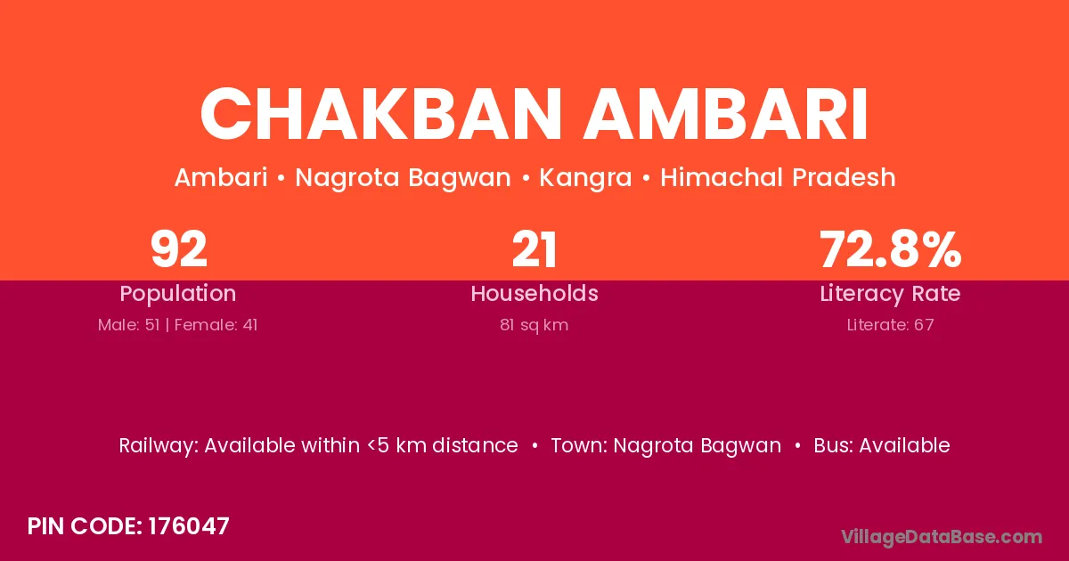 Chakban Ambari village is located in the Nagrota Bagwan Tehsil of the Kangra district in Himachal Pradesh .