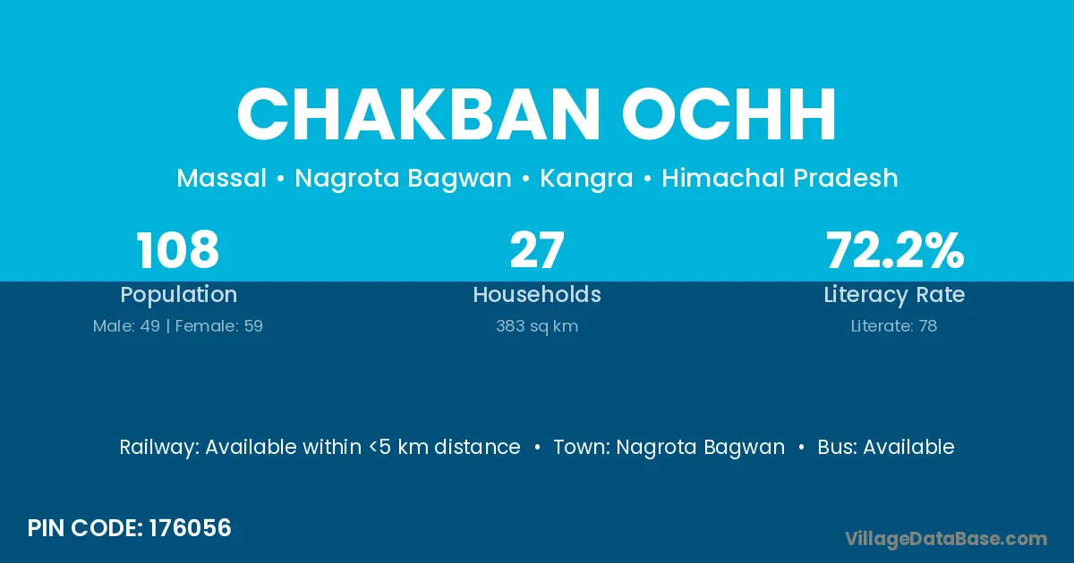 Nagrota Bagwan is the nearest town to Chakban Ochh village for major economic activities