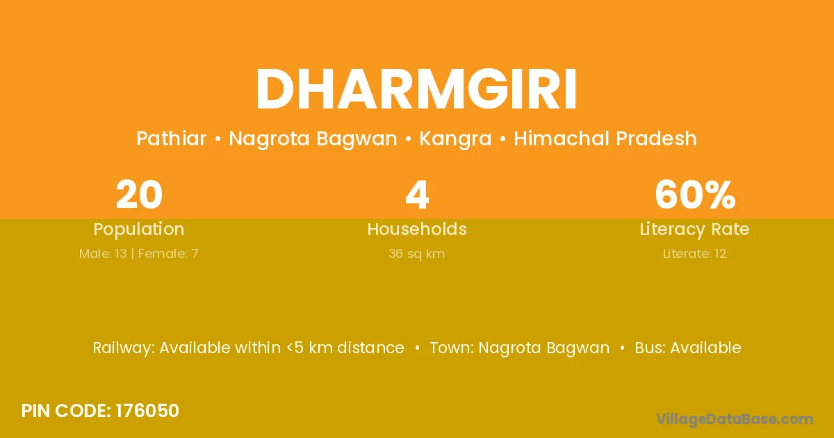Nagrota Bagwan is the nearest town to Dharmgiri village for major economic activities