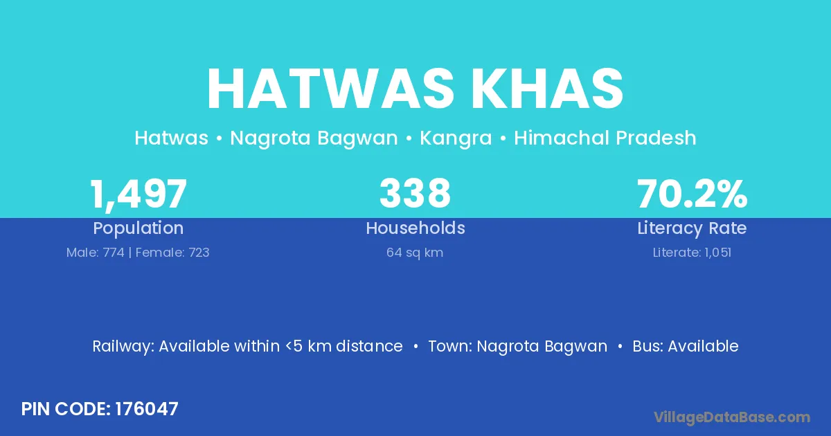 Nagrota Bagwan is the nearest town to Hatwas Khas village for major economic activities