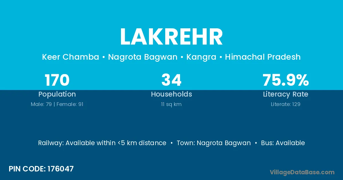 Nagrota Bagwan is the nearest town to Lakrehr village for major economic activities