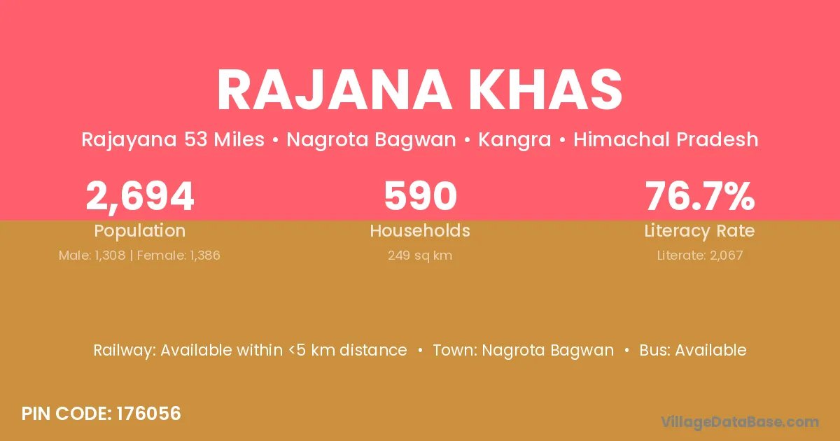 Nagrota Bagwan is the nearest town to Rajana Khas village for major economic activities