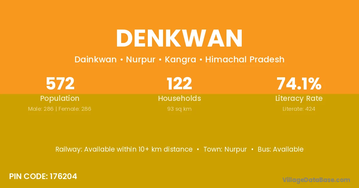 Nurpur is the nearest town to Denkwan village for major economic activities