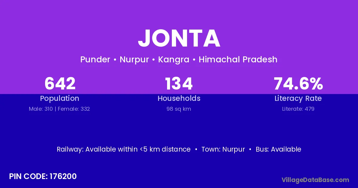 Nurpur is the nearest town to Jonta village for major economic activities