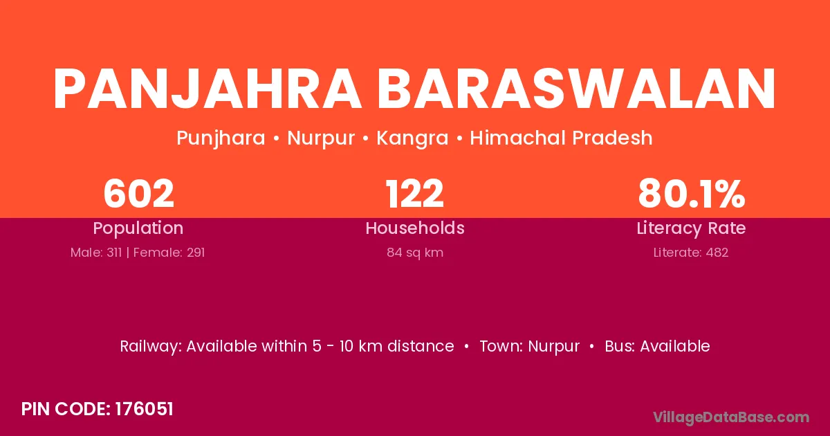 Panjahra Baraswalan village has a total population of 602 people, of which 311 are males and 291 are females.