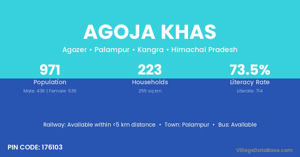 Palampur is the nearest town to Agoja Khas village for major economic activities