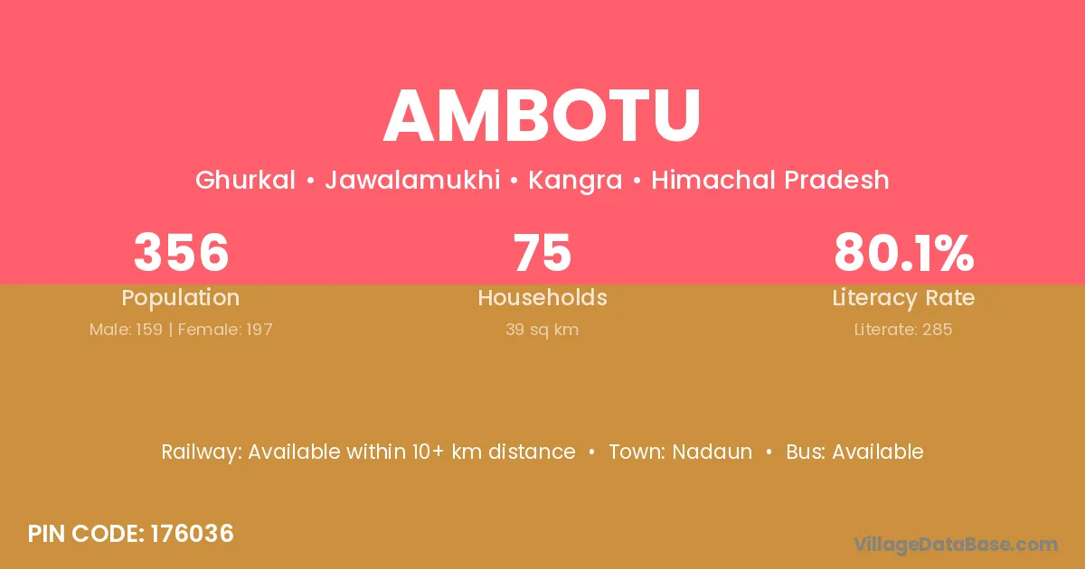 Ambotu village is located in the Palampur Tehsil of the Kangra district in Himachal Pradesh .