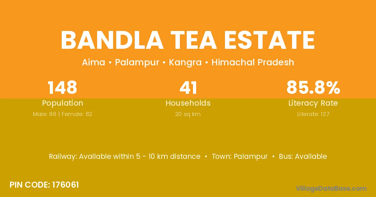 Palampur is the nearest town to Bandla Tea Estate village for major economic activities