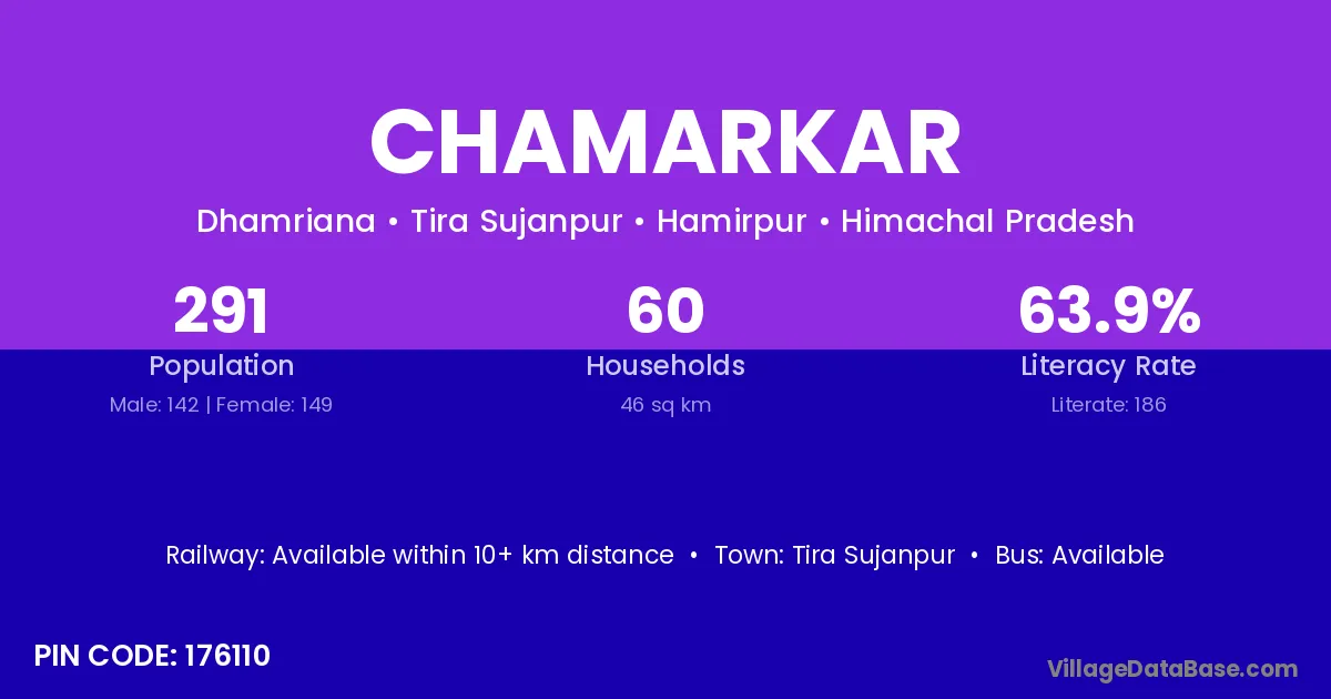Palampur is the nearest town to Chamarkar village for major economic activities