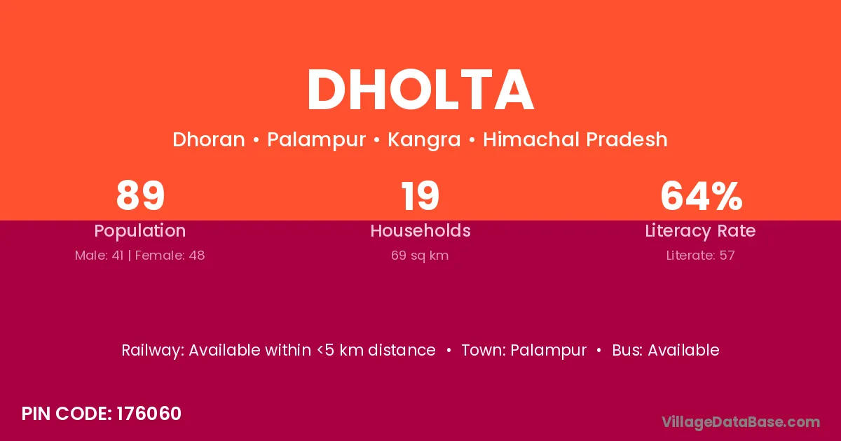 Palampur is the nearest town to Dholta village for major economic activities