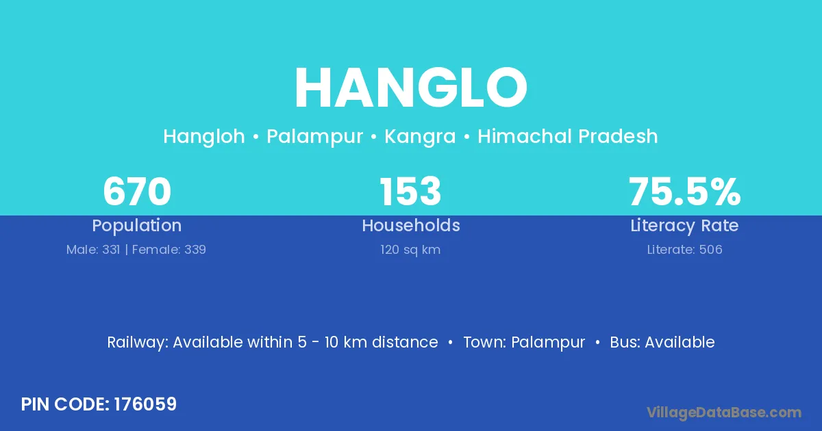 Hanglo village has a total population of 670 people, of which 331 are males and 339 are females.