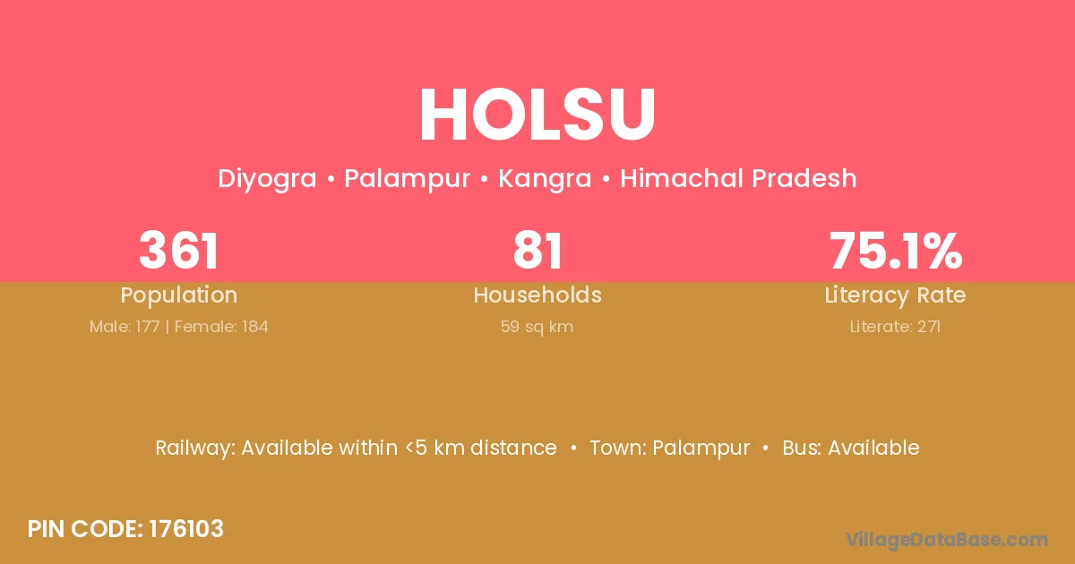 Palampur is the nearest town to Holsu village for major economic activities
