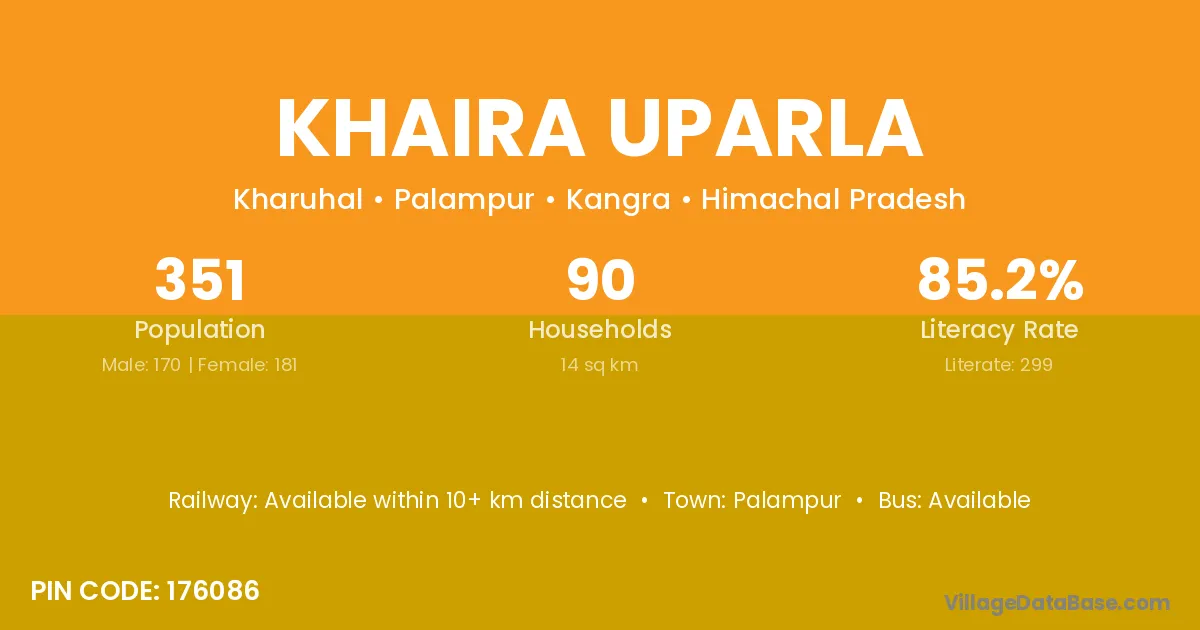 Palampur is the nearest town to Khaira Uparla village for major economic activities