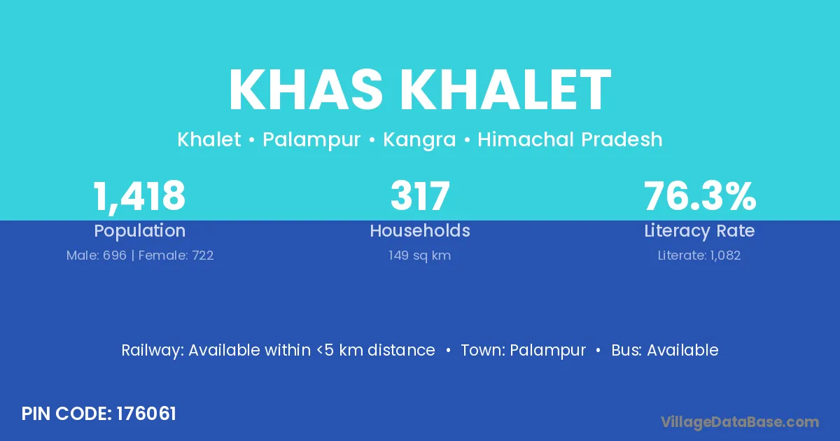 Palampur is the nearest town to Khas Khalet village for major economic activities
