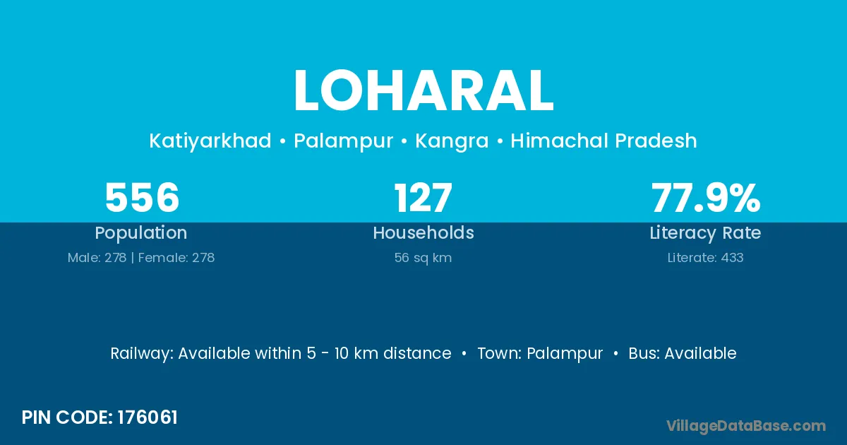 Palampur is the nearest town to Loharal village for major economic activities