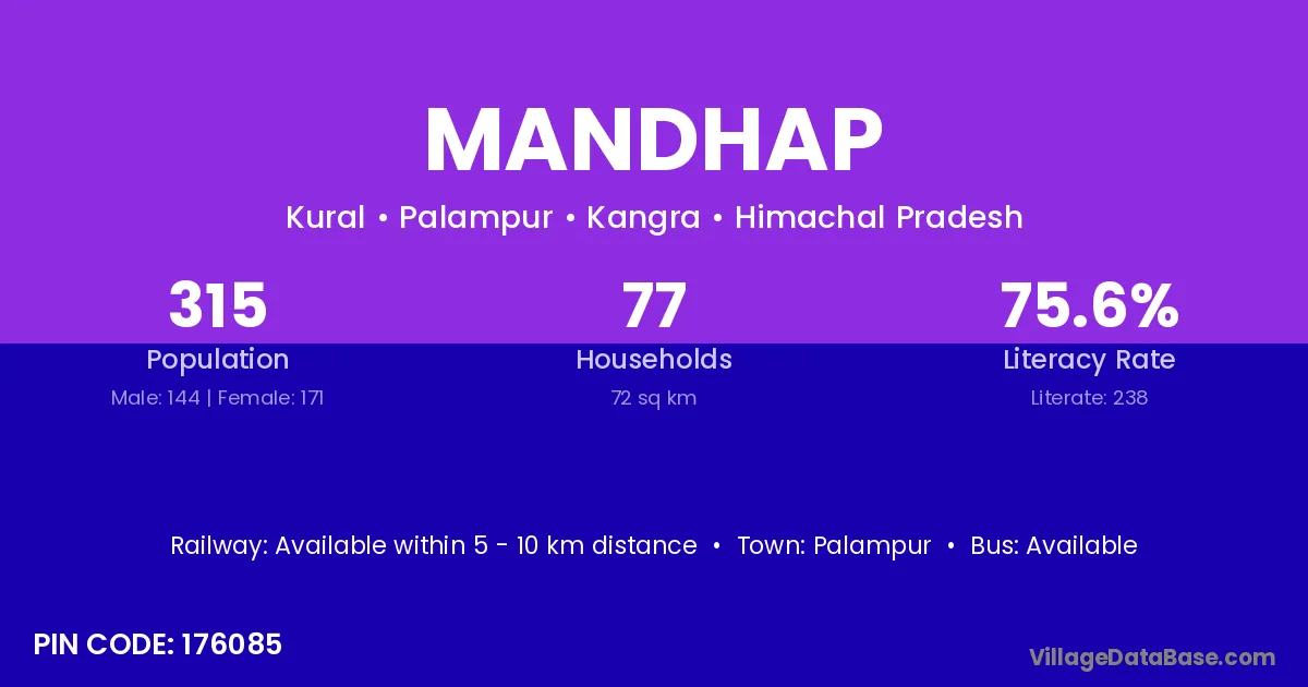 Mandhap village is located in the Palampur Tehsil of the Kangra district in Himachal Pradesh .