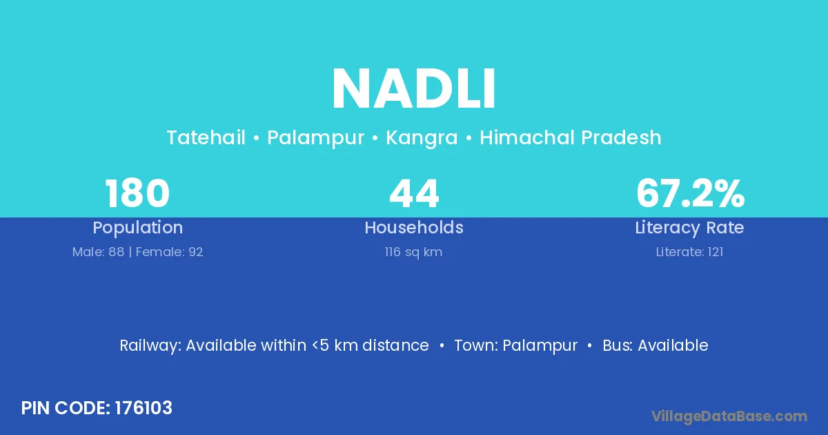 Palampur is the nearest town to Nadli village for major economic activities