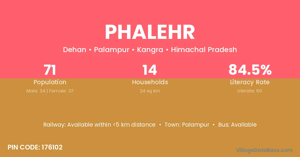 Palampur is the nearest town to Phalehr village for major economic activities