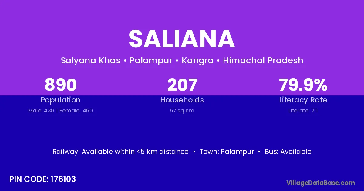 Palampur is the nearest town to Saliana village for major economic activities