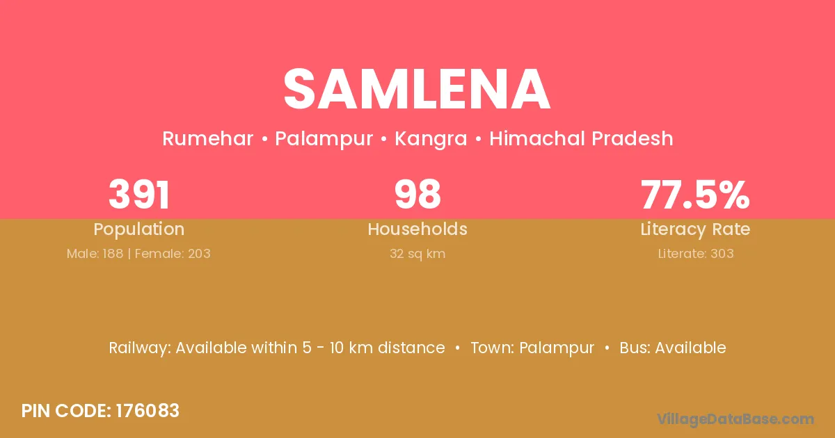 Palampur is the nearest town to Samlena village for major economic activities
