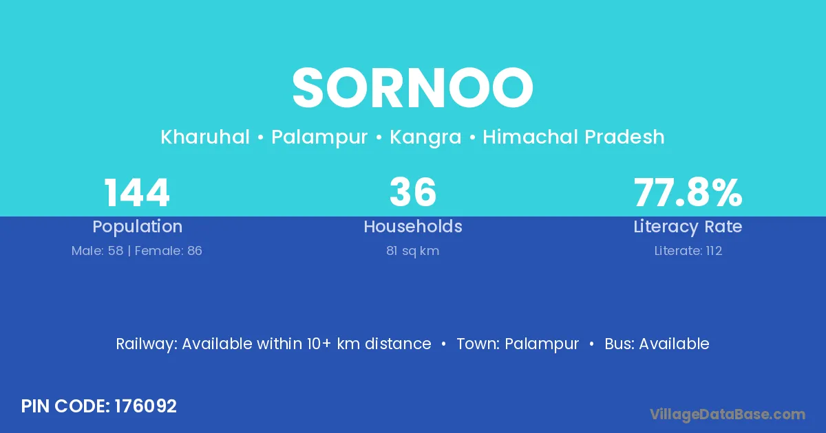 Palampur is the nearest town to Sornoo village for major economic activities