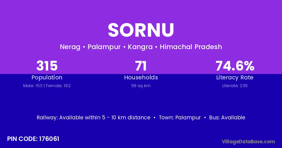 Palampur is the nearest town to Sornu village for major economic activities