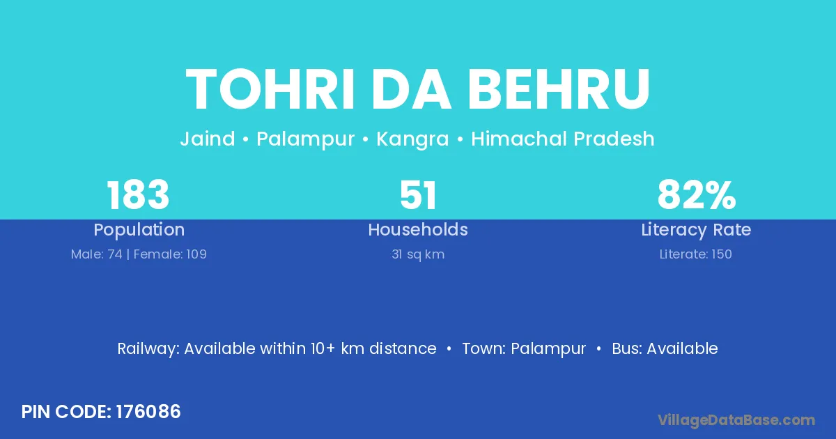 Palampur is the nearest town to Tohri Da Behru village for major economic activities