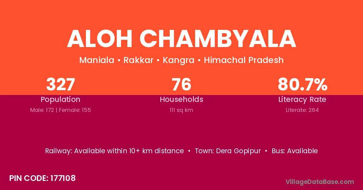 Aloh Chambyala village has a total population of 327 people, of which 172 are males and 155 are females.