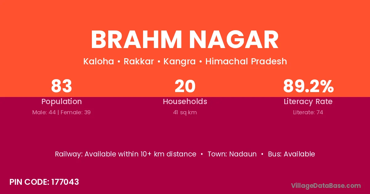 Nadaun is the nearest town to Brahm Nagar village for major economic activities