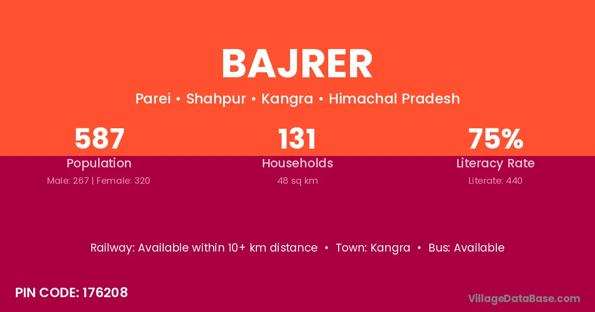 Kangra is the nearest town to Bajrer village for major economic activities
