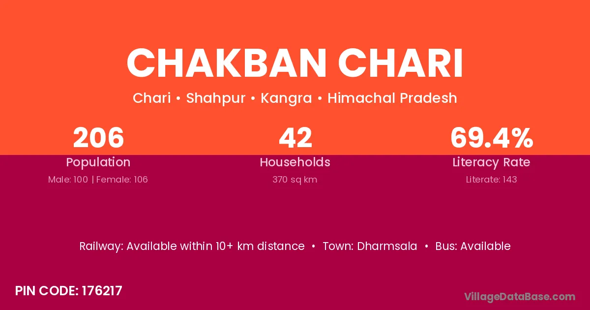 Dharmsala is the nearest town to Chakban Chari village for major economic activities