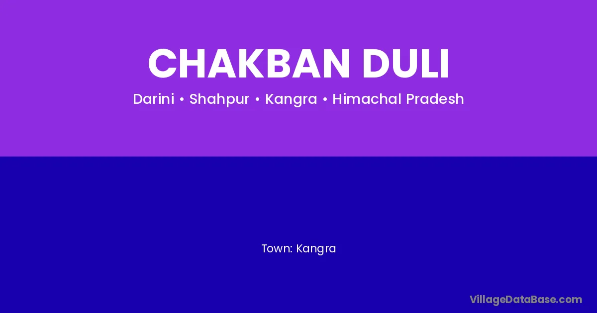 Kangra is the nearest town to Chakban Duli village for major economic activities
