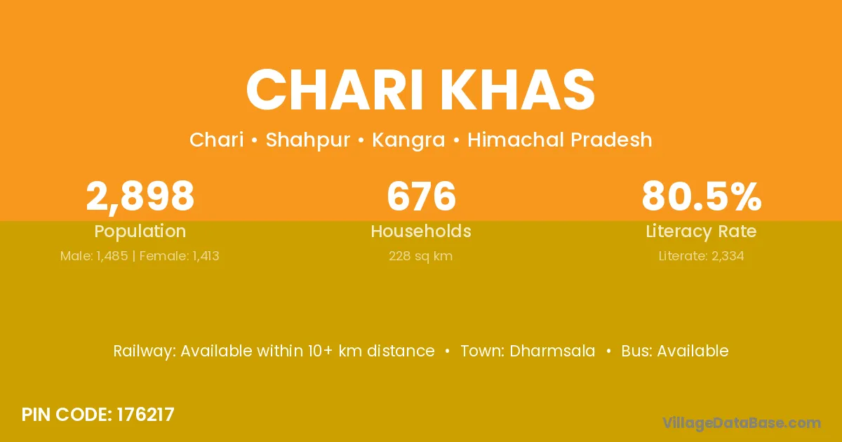 Dharmsala is the nearest town to Chari Khas village for major economic activities